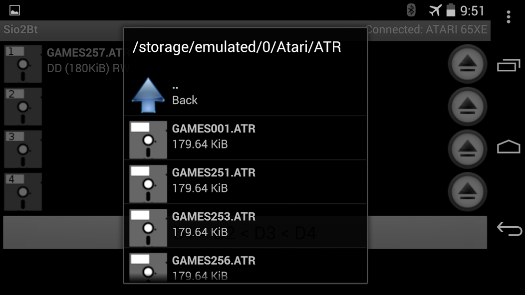 SIO2BTアプリは、最大4つのフロッピーディスクをエミュレートします。